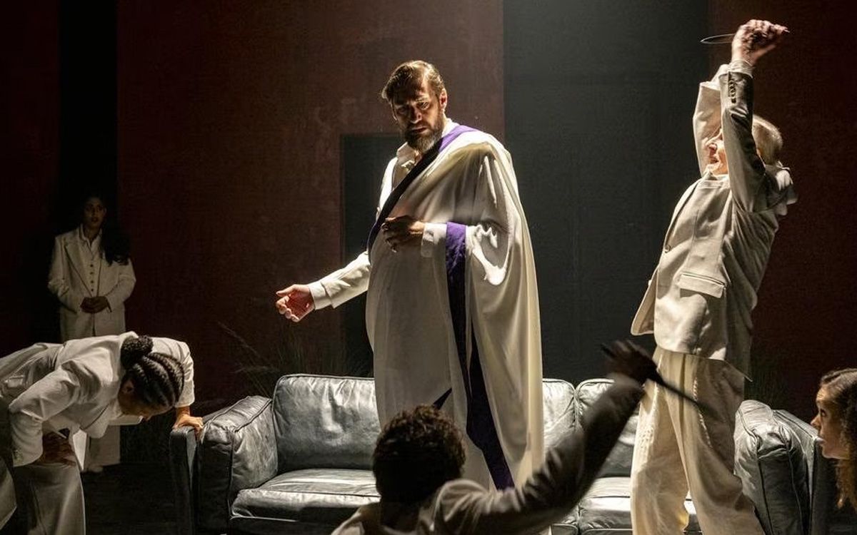 The tribunes Sicinius (Matilda Ridgway) and Brutus (Marco Chiappi) are performed as shabbier left-wing agitators pitched against the conservative patricians in formal dark suits (costumes by Ella Butler). This makes familiar the political and class tensions, and the layers and dramatic dimensions explored by Shakespeare.