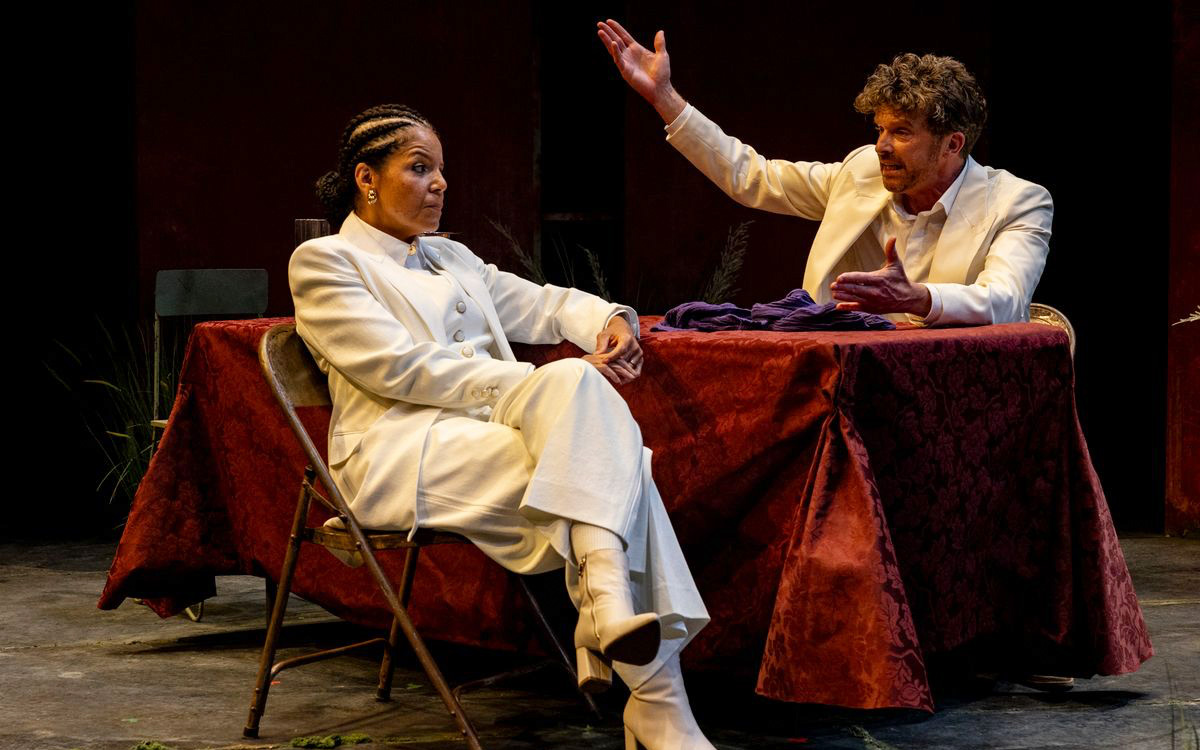 It is not clean-cut. While Cassius, played by Leon Ford, clearly believes that Caesar must be killed, Brutus, played by Brigid Zengeni, feels torn between love for Caesar and love for Rome. However, throughout the play, Cassius convinces her that Caesar cares more for himself than for Rome.