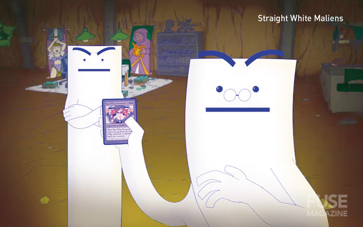 The Straight White Maliens hector and rage in their aptly named man cave, where they train themselves in the old arts of mansplaining and making non-consensual advances. Desperate to pull “hot chicks”, the Maliens have no idea how to build relationships with women. On the other hand, the lesbians don’t seem to know how not to. They meet, they crush, have great sex, and then the intensity of attachments gets too much. Almost instantly, one starts “friendzoning” the other. This take on next-gen lesbian relationships is an amusing counter to the slow-burn tedium of the sapphic costume dramas that have won so many fans, chief among them Céline Sciamma’s Portrait of a Lady on Fire (2019).
